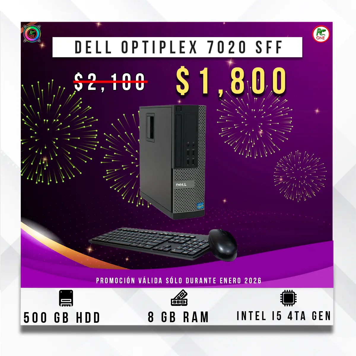 - GARANTÍA DE CALIDAD PC ONE, por escrito de 3, 6 y hasta 12 meses.