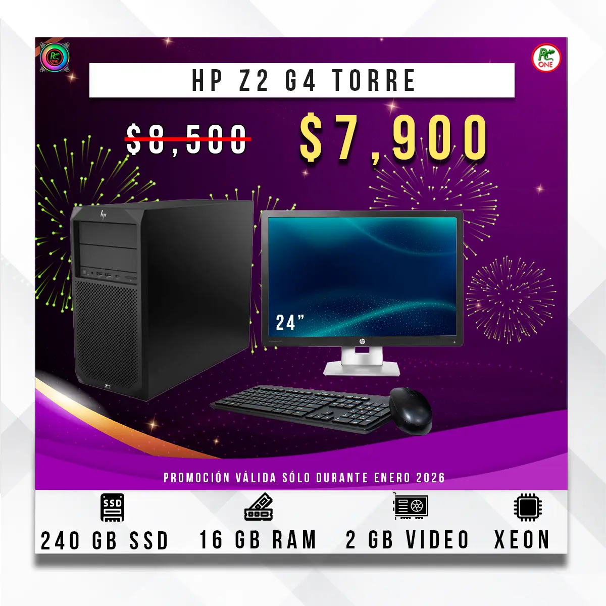 Hp Z2 G4 Xeon Torre, 240Gb ssd, 16Gb RAM, 2Gb video Monitor 24”, Teclado/Raton Wifi y Bluetooth
