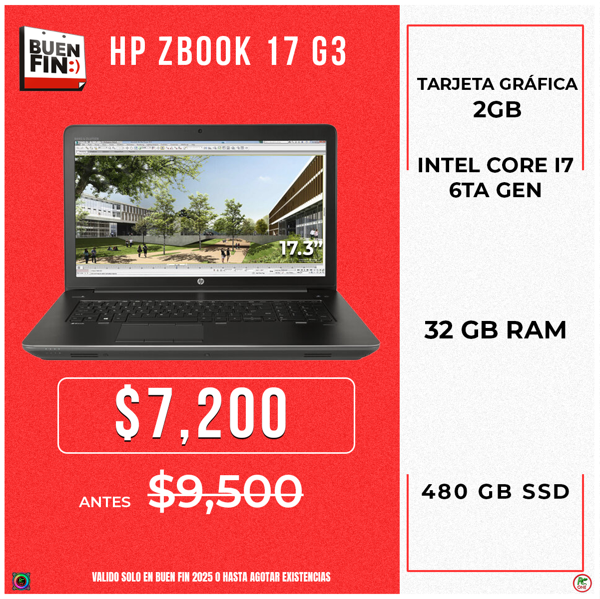 Producto: Hp Zbook 17 G3 i7 6th Generacion 32 RAM /480 GB SSD Grafica Nvidia Quadro 2gb M1000M