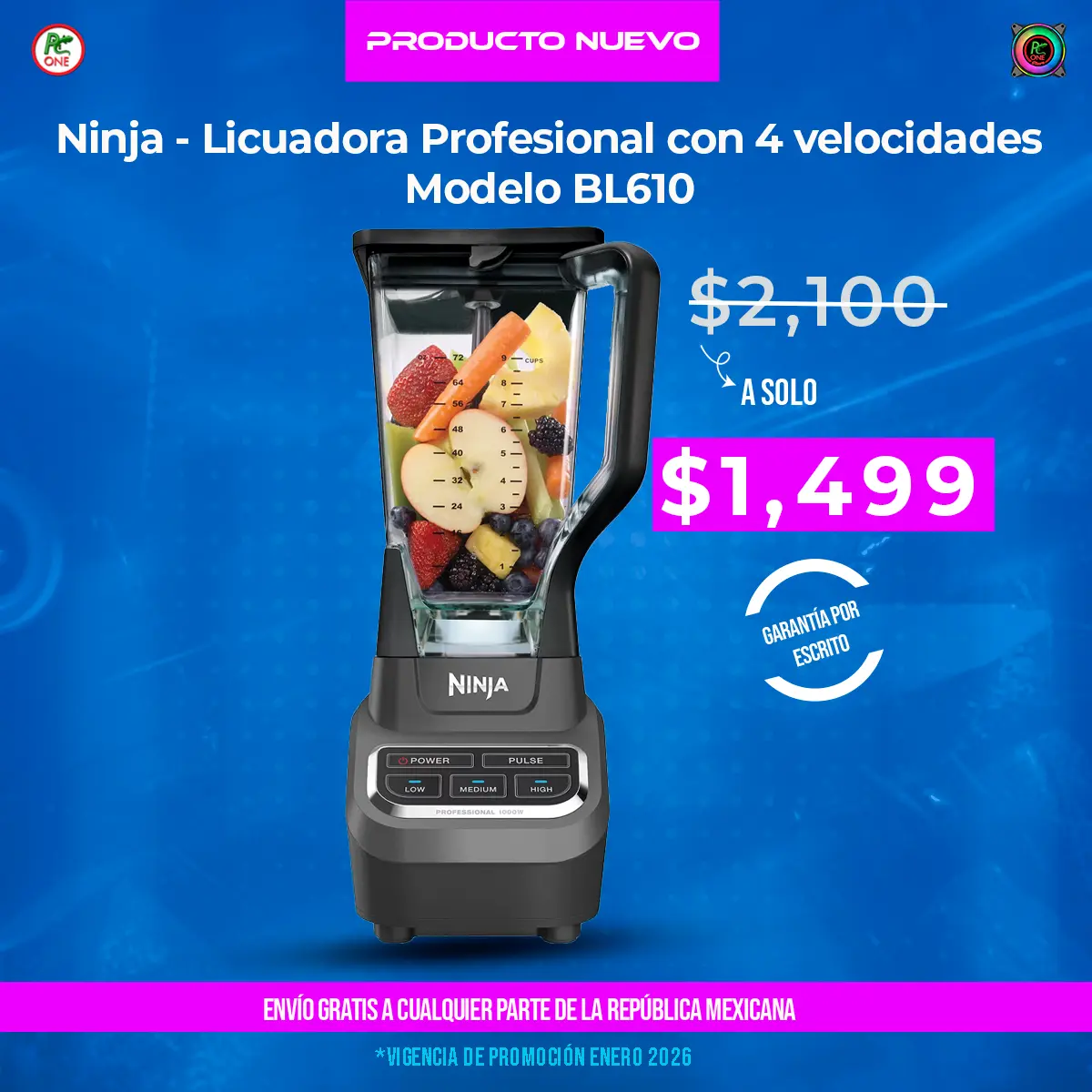 La licuadora profesional Ninja® 1000 cuenta con un diseño elegante y un rendimiento excepcional con 1000 vatios de potencia profesional. Las cuchillas Total Crushing de Ninja ofrecen para una trituración, un mezclado, una preparación de puré y un procesamiento controlado de hielo perfectos. La jarra de la licuadora profesional XL de 72 oz es ideal para preparar bebidas y batidos para toda la familia.